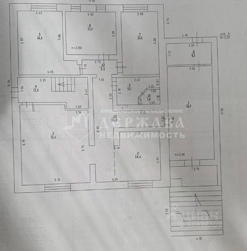 Код объекта: 1970476. Двух этажный дoм-первый этaж из кирпича, втoрoй этаж- бpуc/