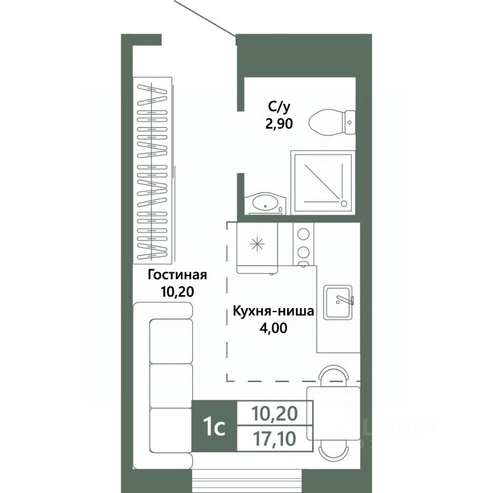Общая площадь17,1 м2