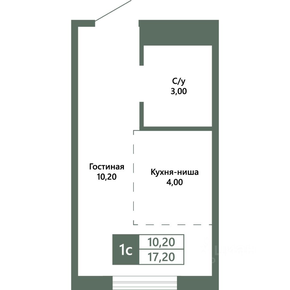 Общая площадь17,2 м2