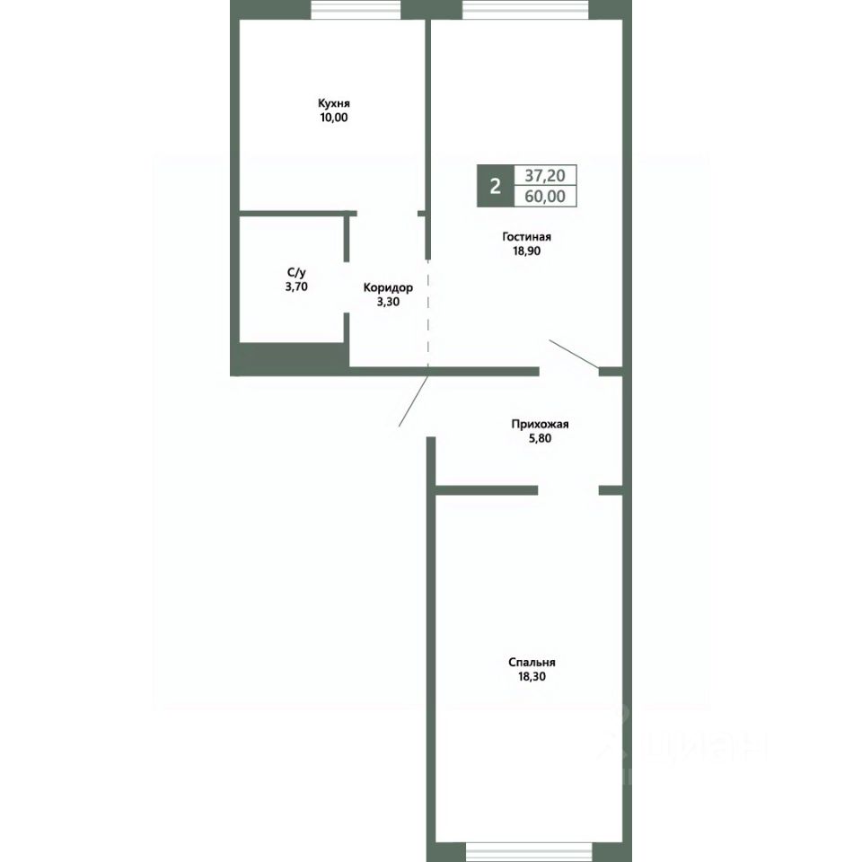 Общая площадь60 м2
