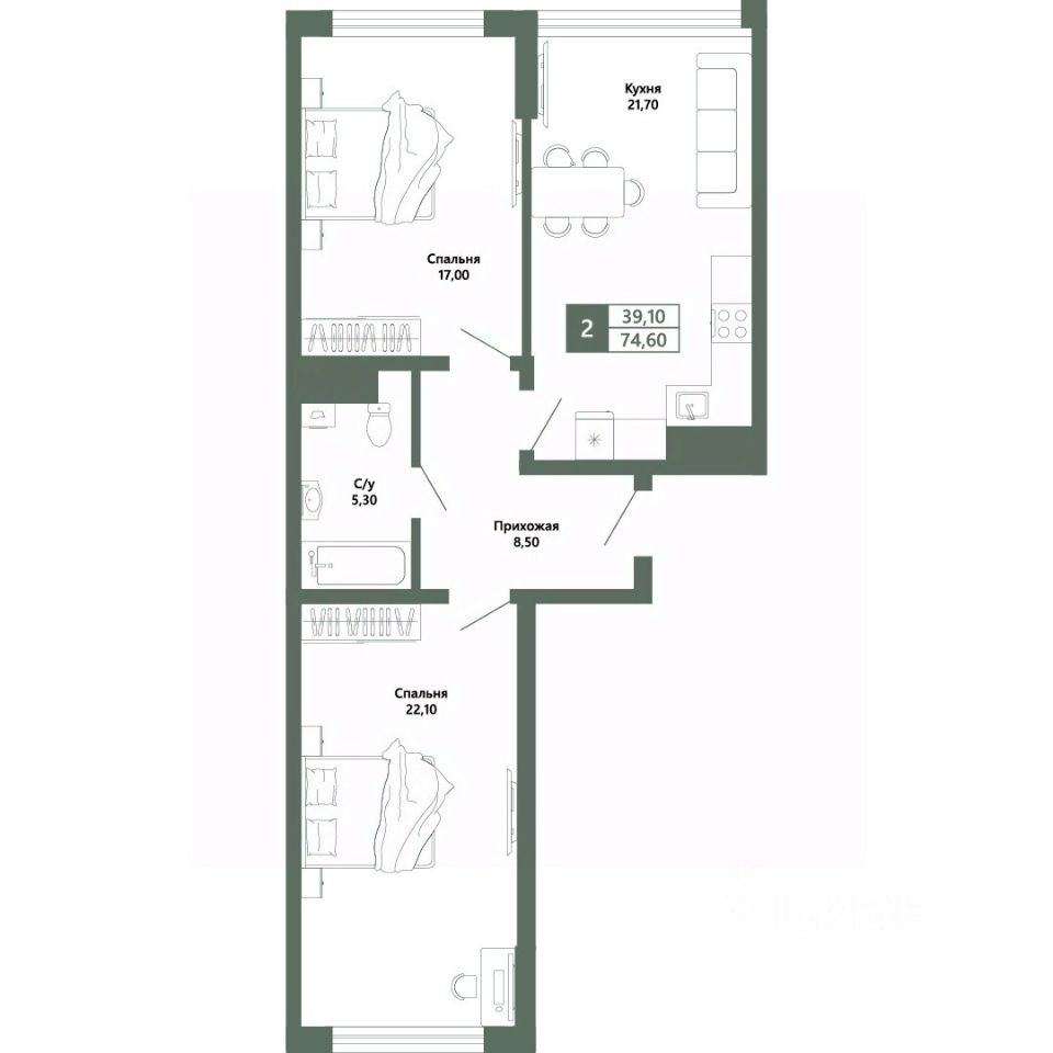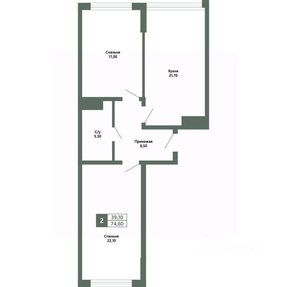 Общая площадь74,6 м2