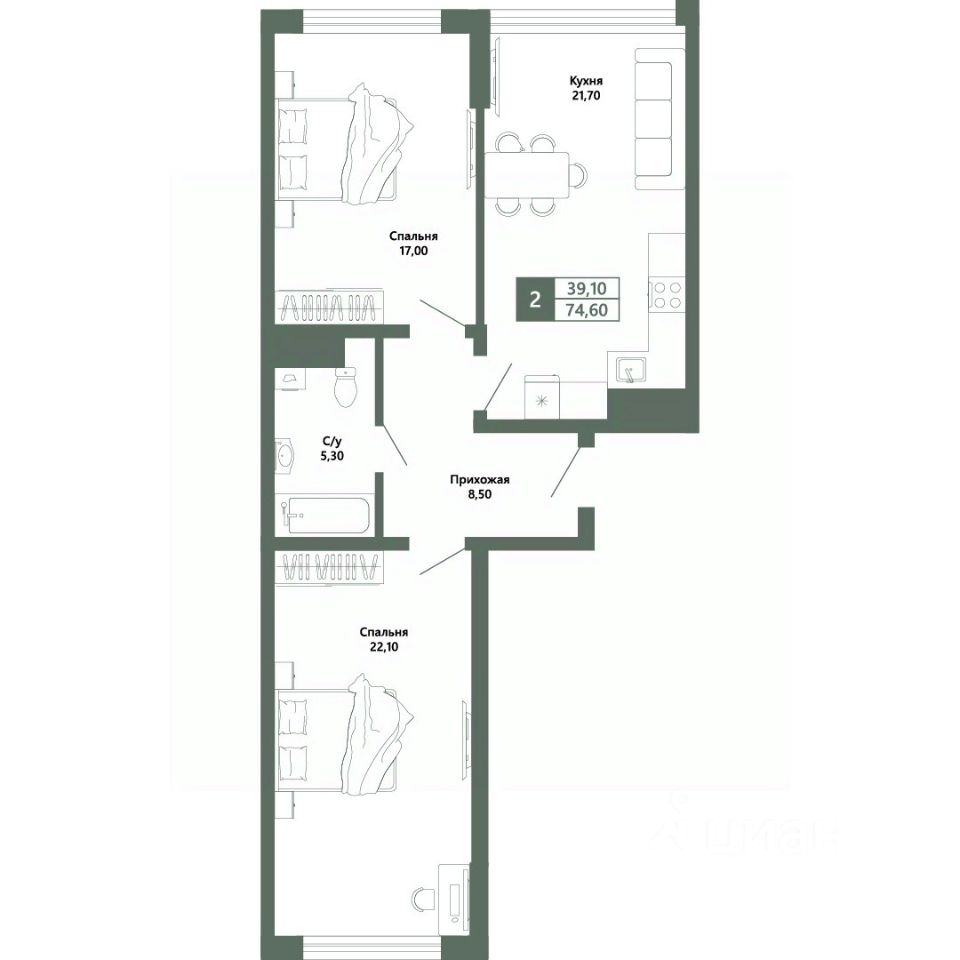 Общая площадь74,6 м2