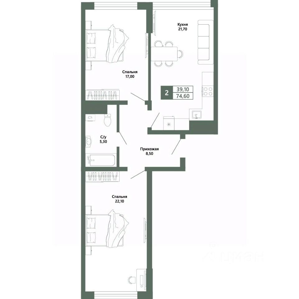 Общая площадь74,6 м2