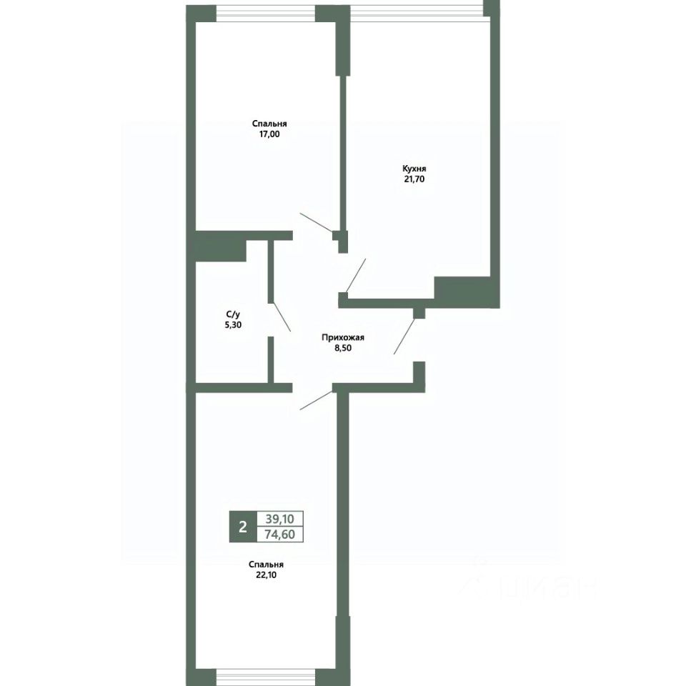 Общая площадь74,6 м2
