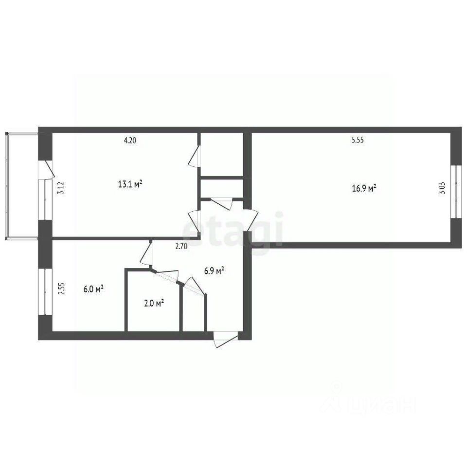 Общая площадь 48 м2, комнаты изолированные, есть гардеробная и кладовая.