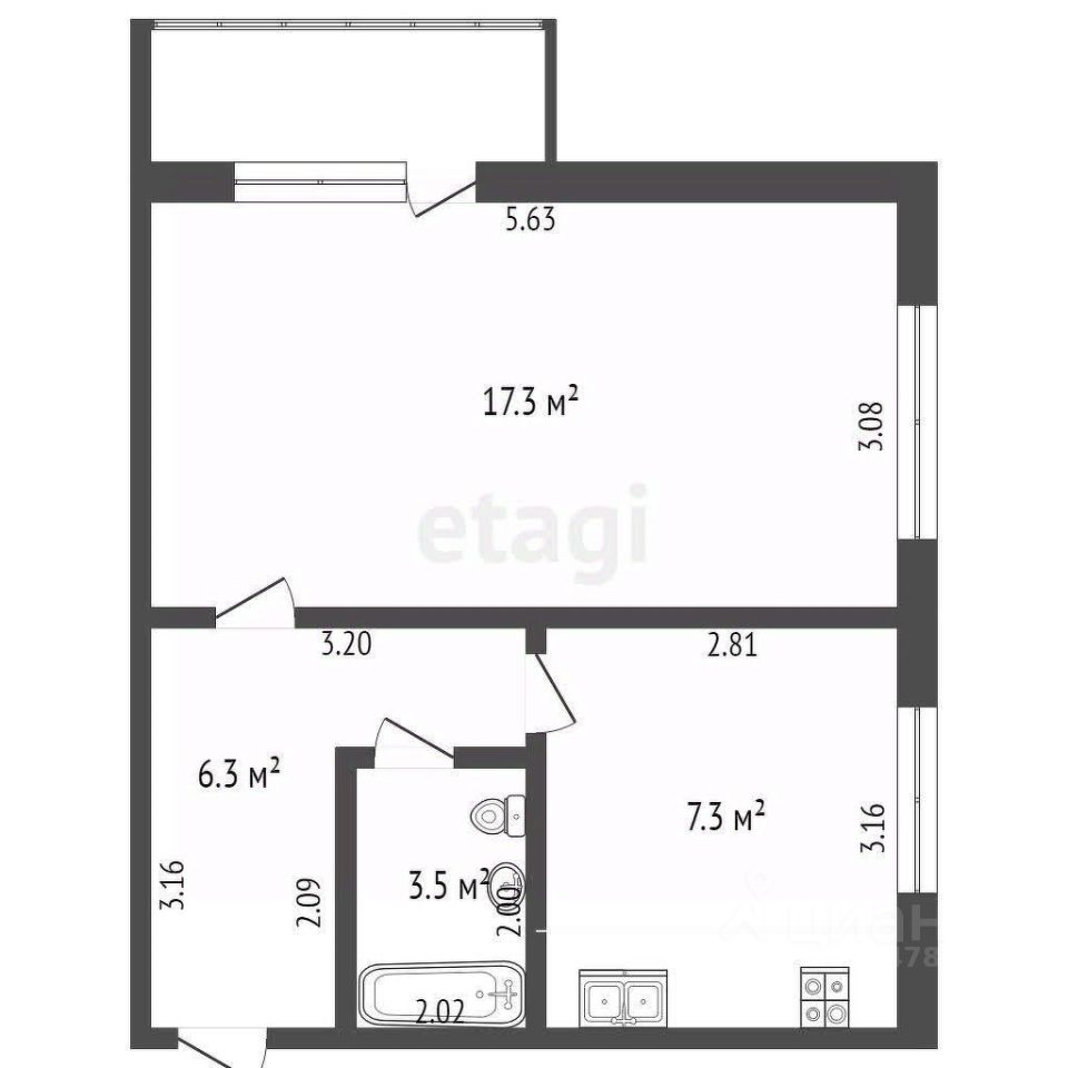 Планировка подразумевает кухню 7,5 кв.м., вместительный коридор и совмещенный санузел. Есть возможность дополнительно расширить функциональную площадь.