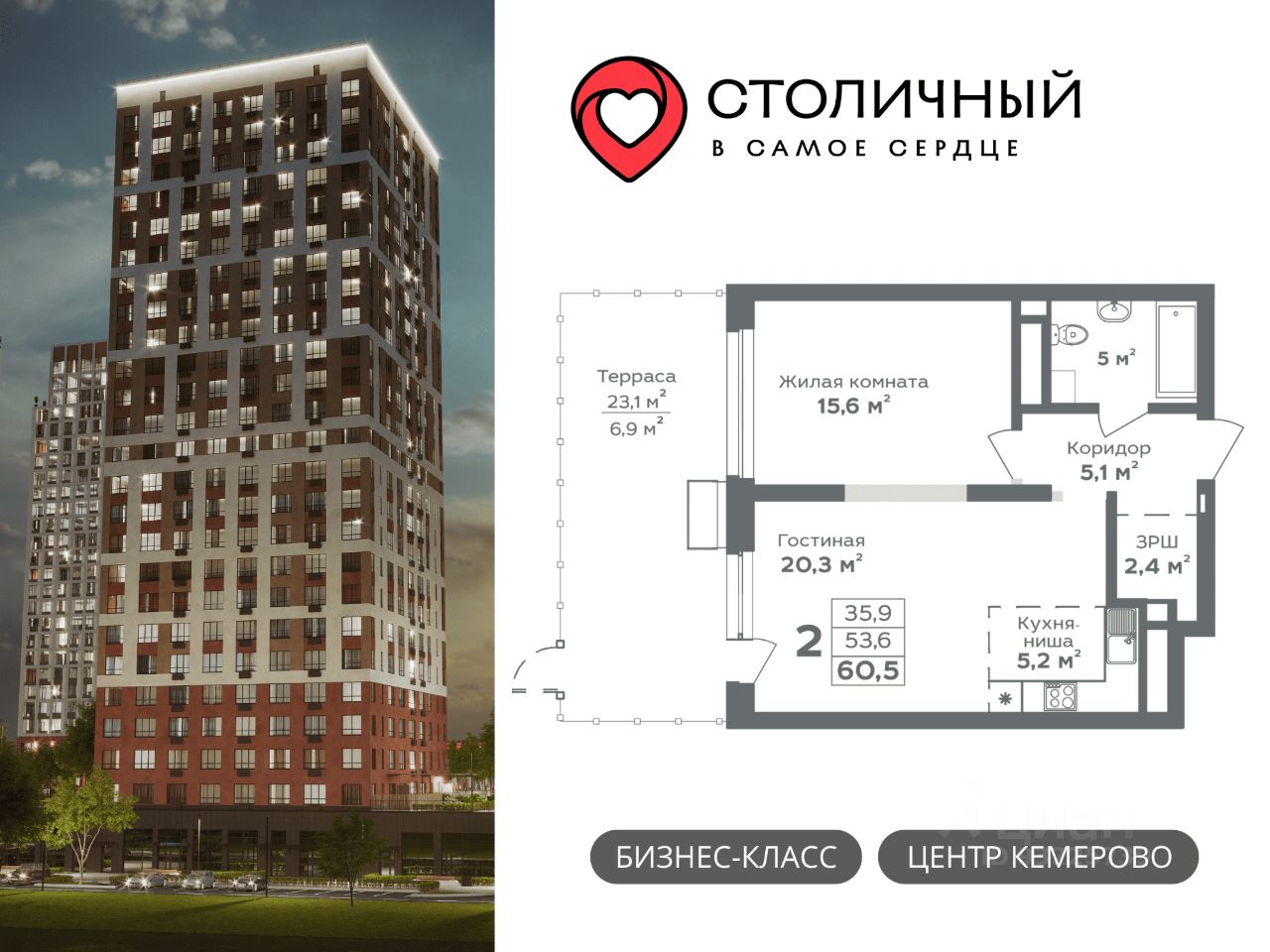 Не подходите под семейную ипотеку? СТАВКА 13,9% ДЛЯ ВСЕХ на весь срок. А первый взнос от 20%! Звоните, поможем определиться с выбором квартиры, подберем самую выгодную программу кредитования и подготовим предварительный расчёт платежей. ---------------------------------------------- ЖК ''Столичный'' — ваше пространство для жизни, развития и отдыха. Всего 5 домов от 25 до 28 этажей. Благодаря панорамному остеклению в квартирах много света и открываются захватывающие панорамные виды на реку Томь, Красное озеро и Московскую площадь. Отделка квартир White box (ровная стяжка пола с шумоизоляцией, улучшенная штукатурка стен, разводка электрики по квартире, межкомнатные перегородки, горизонтальная разводка отопления в полу). Двухуровневый паркинг на -1 и 1 этаже с собственным автомоечным комплексом. Закрытая территория — ваш личный оазис безопасности и комфорта, где нет места для машин. Просторный двор — зона для отдыха и общения, где каждый найдет себе занятие по душе: от современных игровых комплексов до спортивных площадок, окруженных зеленью и ландшафтным дизайном. Ресепшен с консьерж-обслуживанием, куда вы можете обратиться для решения различных бытовых вопросов. Круглосуточный пост охраны на территории жилого комплекса. Премиум фитнес-клуб World Class на территории комплекса — просторные тренажерные залы, бассейны для взрослых и детей, зоны функционального тренинга, SPA-салон. Инфраструктура уже 9 баллов из 10 — здесь расположены детские сады, школа, в пешей доступности торговые центры, крупные спортивные объекты ледовый дворец ''Кузбасс'', спорткомплекс ''Кузбасс-Арена''. ---------------------------------------------- Успейте приобрести квартиру по самым низким стартовым ценам! Напишите в чат - ответим на все ваши вопросы!