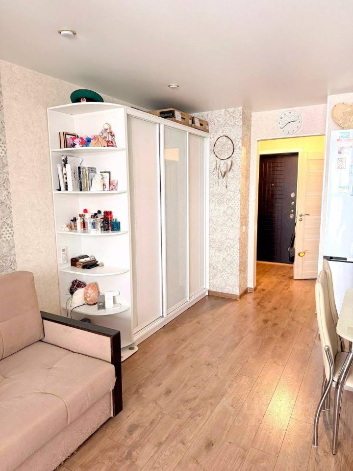 Уютная студия с просторным балконом в доме 2018 года! Приглашаю вас посмотреть светлую и тёплую студию на солнечной стороне — здесь всегда много естественного света, что создает особую атмосферу уюта даже в пасмурный день. Площадь студии 30,1 м², но главная изюминка — утепленный и присоединенный балкон (ещё +6 м²), который увеличивает полезное пространство и может использоваться как полноценная зона отдыха, кабинет или обеденная зона. На балконе уже установлены рулонные шторы от солнца. Квартира частично меблирована: Современный кухонный гарнитур со встроенной техникой— можно сразу готовить. Встроенный шкаф в прихожей — для хранения вещей. Кондиционер — для комфортной температуры круглый год. В санузле выполнена качественная отделка кафелем.
