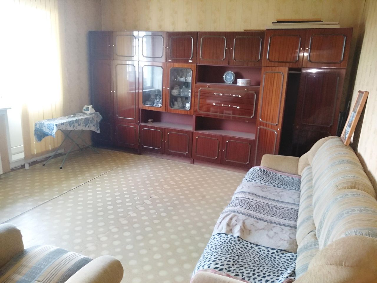 линолеум, обои, стеклопакеты, балкон застеклен.