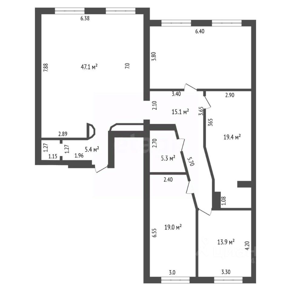 Общая площадь 151 м2. Три изолированные спальни, большая гостиная 47 м2., две гардеробные.