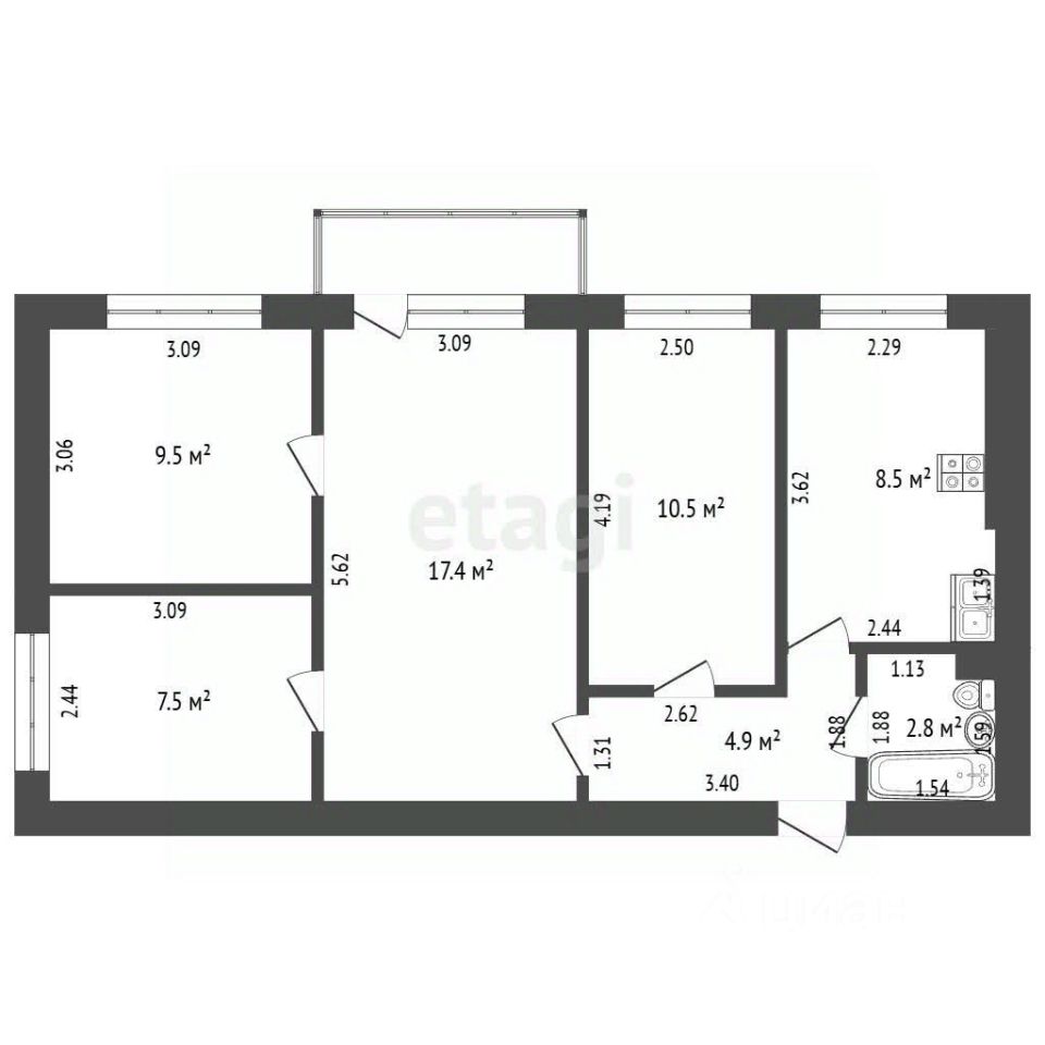 - Просторная кухня площадью 8.5 м² позволит комфортно разместить обеденную зону и кухонный гарнитур - Гостиная размером 17.4 м² станет местом для семейных вечеров и приёма гостей - Три изолированных спальных комнаты обеспечат каждому жильцу личное пространство и покой - Современный совмещённый санузел дополнит интерьер вашей мечты