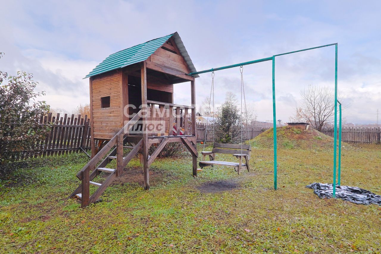 На территории есть: углярка, дровник, кладовая для инструментов, теплица, грядки, погреб, беседка, детская площадка: домик с турником и качелями, батут.