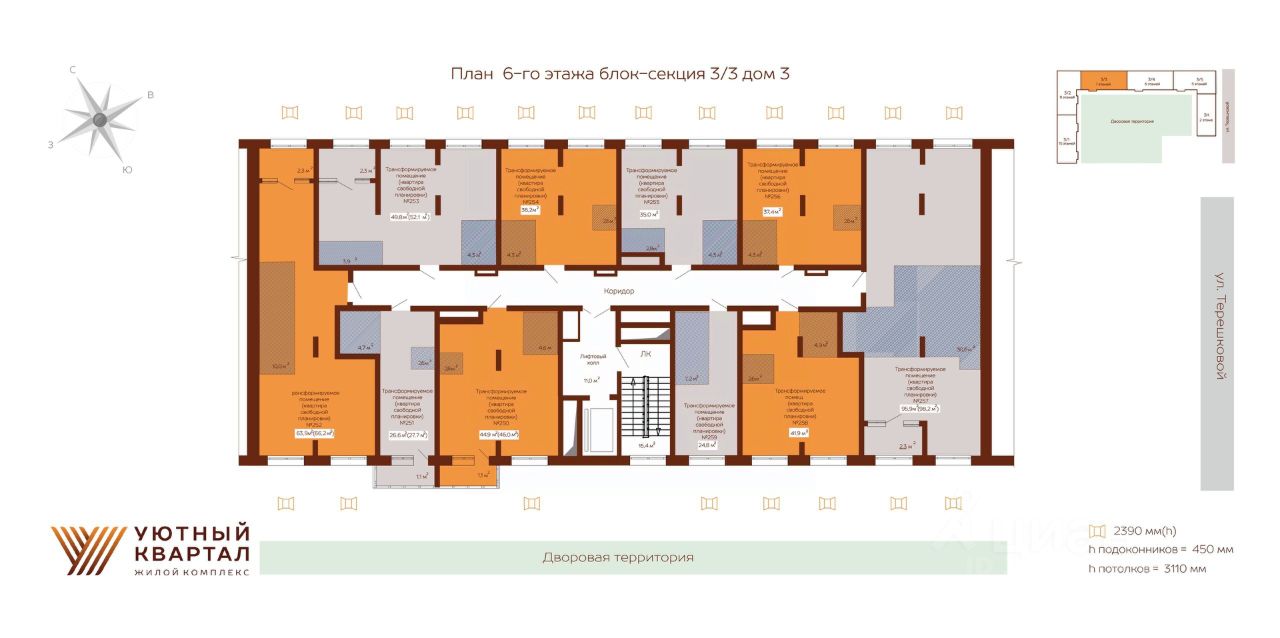 ДО КОНЦА ФЕВРАЛЯ ДЕЙСТВУЮТ АКЦИИ: СТАВКА 3,5% НА ВЕСЬ СРОК, РАССРОЧКА НА КВАРТИРЫ, ЗИМНЕЕ КОМБО - СКИДКА ДО 15% ПРИ ПОКУПКЕ КВАРТИРЫ ВМЕСТЕ С ПАРКОВКОЙ/КЛАДОВОЙ И ДРУГИЕ ПРЕДЛОЖЕНИЯ! Группа компаний ''Атмосфера'' объявляет о скором старте продаж в новом доме 3 в рамках масштабного проекта комфорт-класса ''Уютный квартал''. Это уникальный шанс забронировать квартиру по выгодным стартовым ценам. О проекте: ЖК ''Уютный квартал'' — первый проект комплексной застройки в формирующемся новом центре города, реализованный в концепции ''город-сад''. Жителей ждут благоустроенные общественные пространства, зоны для прогулок и отдыха, современная инфраструктура для семьи и детей. Особенности новой очереди (Дом 3): Архитектура: 5 секций переменной этажности (от 5 до 15 этажей). Квартиры: от 23,5 до 114,2 м². Отделка на выбор — под самоотделку, ''white box'', ''комфорт'', ''комфорт плюс''. Эксклюзивные планировки: пентхаусы на последних этажах с потолками 3,5 м и застекленными террасами. Двор: закрытый внутренний двор без машин с современными детскими площадками. Комфорт: панорамные окна, премиальная отделка мест общего пользования (МОП). Инфраструктура для жителей: подземный паркинг с лифтом, кладовые помещения. Инфраструктура и благоустройство (для всего ЖК): Для отдыха: 2 фонтана, арт-объекты, подвесные гамаки, качели. Для спорта: всесезонный футбольный манеж, площадки для баскетбола и волейбола, воркаут-зоны, площадка для йоги, 3,5 км велодорожек. Для детей: игровые площадки разных возрастных категорий, зимняя горка, каток. Для прогулок: более 10 км пешеходных дорожек. Ивент-беседка для проведения праздников. Уже работает в первых очередях: Супермаркет, аптека, пиццерия, кофейня, детский центр. Фитнес-рум, комната для детских праздников. Подкаст-рум с функцией семейного кинотеатра, VR-рум Круглосуточная служба безопасности с более чем 1000 видеокамер. Преимущества локации: Детский сад на 300 мест. Современная школа с блоком школы искусств Спа центр Остановка трамвая в шаговой доступности. Способы покупки: • Ипотека от ведущих банков. • Военная ипотека. • Рассрочка. • Trade-in. • Материнский капитал. • Государственные субсидии и сертификаты. Успейте стать частью ''Уютного квартала'' — пространства, где уют, комфорт и современная инфраструктура соединяются для вашей новой счастливой жизни!